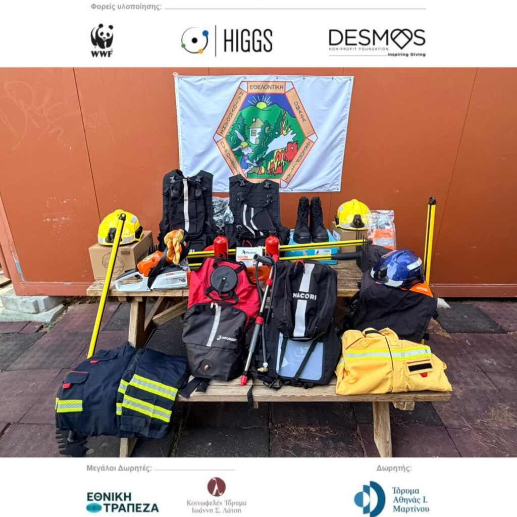 Δεσμός – Desmos, το οποίο, σε συνεργασία με το WWF Greece και το HIGGS, καθώς και με την πολύτιμη υποστήριξη των ιδρυμάτων Αθηνάς Ι. Μαρτίνου, Κοινωφελές Ίδρυμα Ιωάννη Σ. Λάτση και της Εθνικής Τράπεζας, προχώρησε στη δωρεά αναγκαίου υλικοτεχνικού εξοπλισμού.